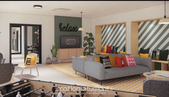 - Salon détente avec babyfoot, télé, distributeurs de snacks et café